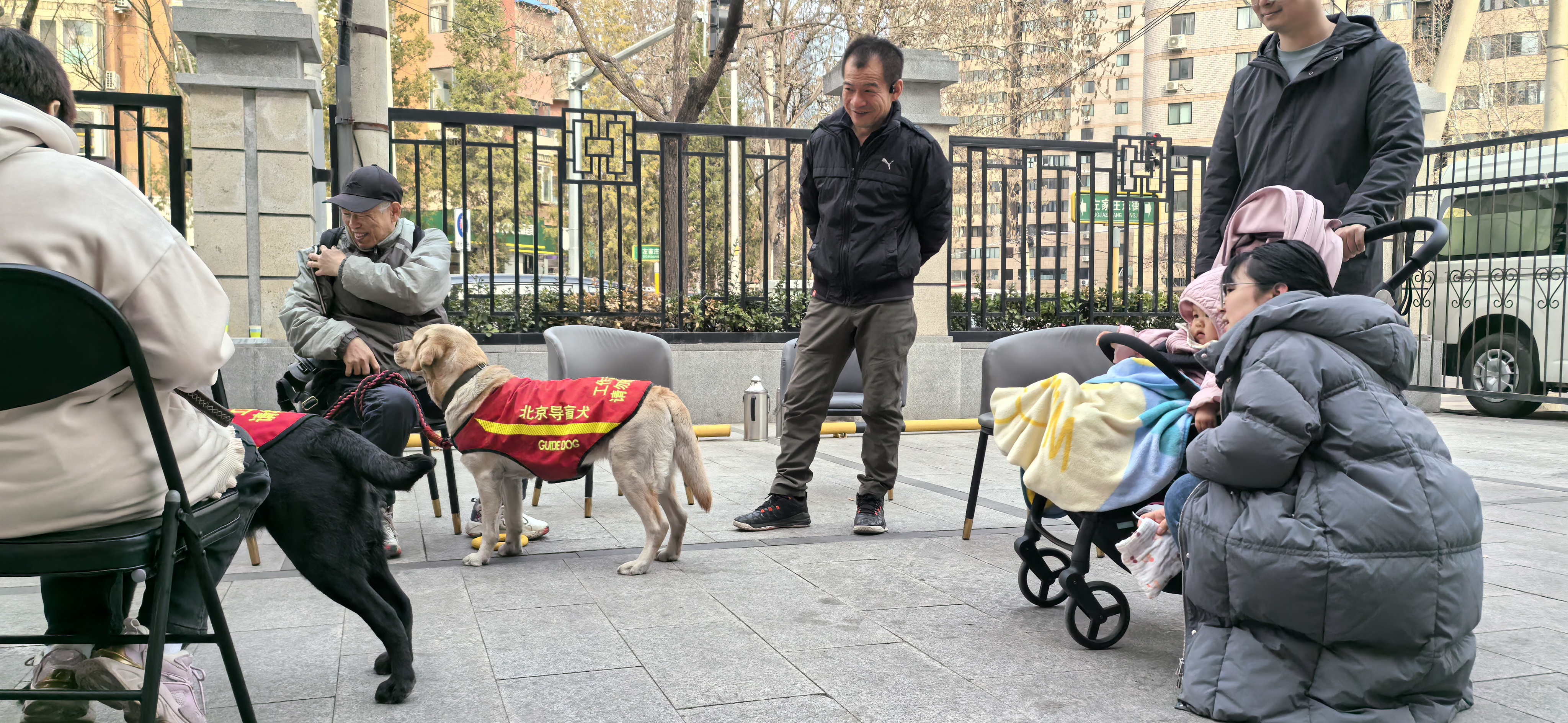 下午一时许,中心门口摆放了导盲犬主题展板,吸引了过往行人的目光,现场设置了装备展示区、知识讲解区和公众交流区。工作人员主动走上路边,热情邀请市民进来坐一坐、看一看。很快,原本安静的场地变得热闹起来--推着婴儿车的年轻父母蹲下来给孩子讲解,附近的居民三三两两结伴而来,爱狗人士更是围着使用者问个不停,还有不少得到消息的爱心人士专程赶来参与,三拉着行李箱的外地游客到酒店办好入住后,又折返回来参与活动。人群中,年龄最小的参与者只有十个月大,在婴儿车里指着导盲犬兴奋的发出咿咿呀呀的声音;年龄最长者已八十多岁,拄着拐杖认真聆听工作人员的讲解,临走时不断的说着“真好、真好。”