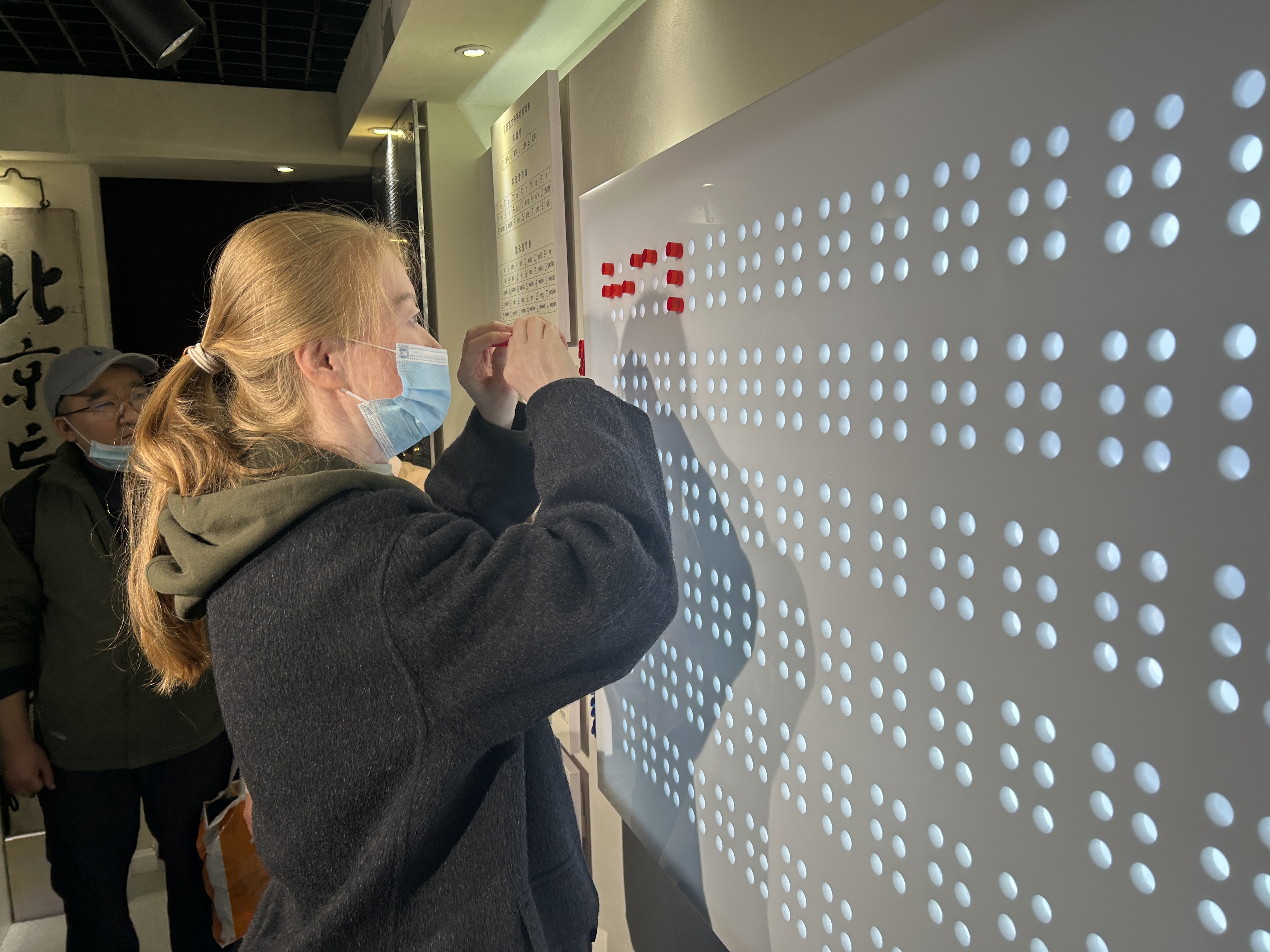 参观学习期间,一个特别策划的互动环节将活动氛围推向高潮。在图书馆专业老师的指导下,残疾人工作者们现场学习了盲文的基本拼写规则——六点字的基本结构、声母韵母的对应点位以及书写方法。随后,大家齐心协力,共同完成了“西城区温馨家园”六个字的盲文拼写,从第一个点位到最后一点的完成,用心感受每一个凸点所承载的信息与重量,真切体会视障群体的交流方式。