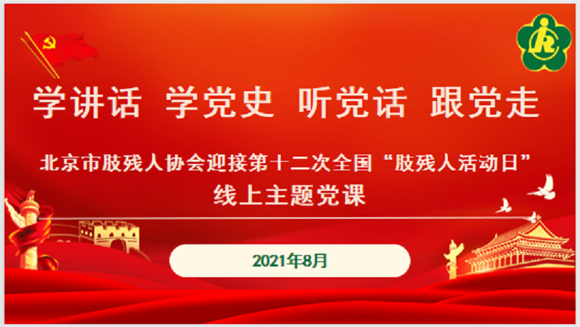 2021年8月11日是第十二次全国“肢残人活动日”。为深入学习贯彻习近平总书记“七一”重要讲话精神,结合开展党史学习教育,积极推进“我为群众办实事”实践活动,北京市肢残人协会组织开展了迎接第十二次全国“肢残人活动日”主题活动。