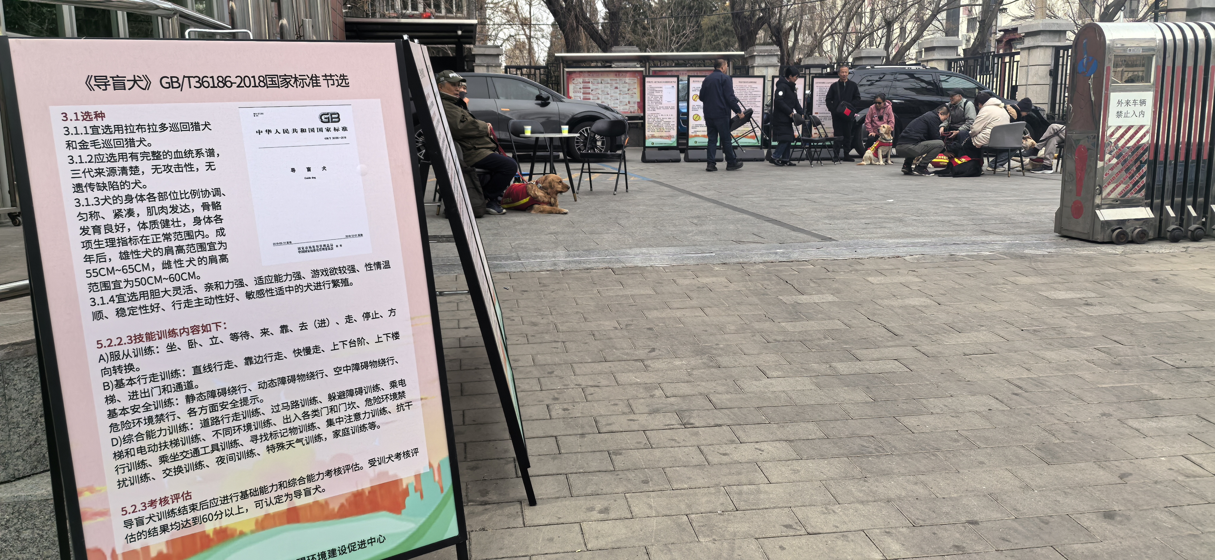 在知识讲解区,工作人员围绕导盲犬国家标准和《无障碍环境建设法》中关于导盲犬的相关条款进行解读,并重点宣传“四不一问”原则——不喂食、不抚摸、不呼唤、不拒绝,主动询问。通过展板展示和现场讲解,公众了解到导盲犬的选种标准、训练过程以及它们对视障人士出行的重要作用。