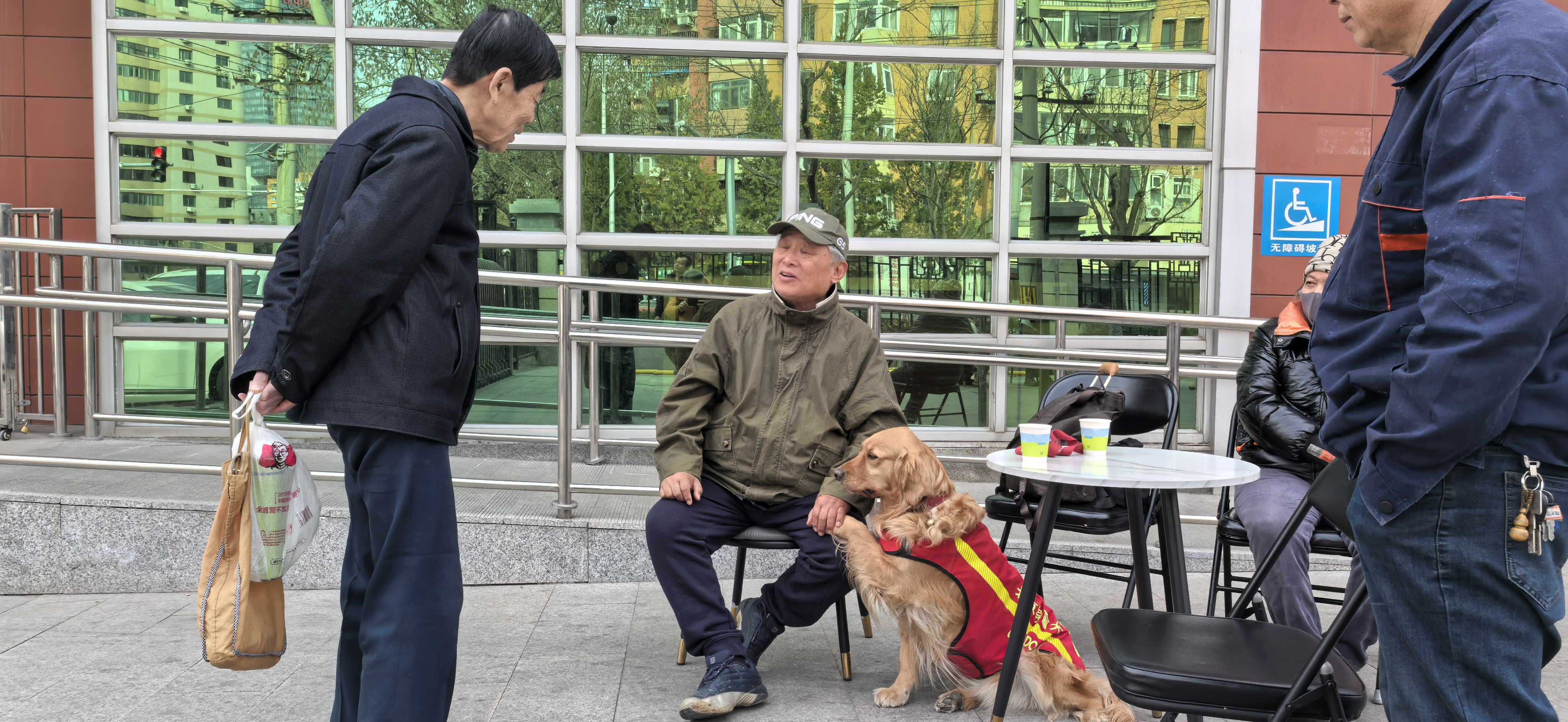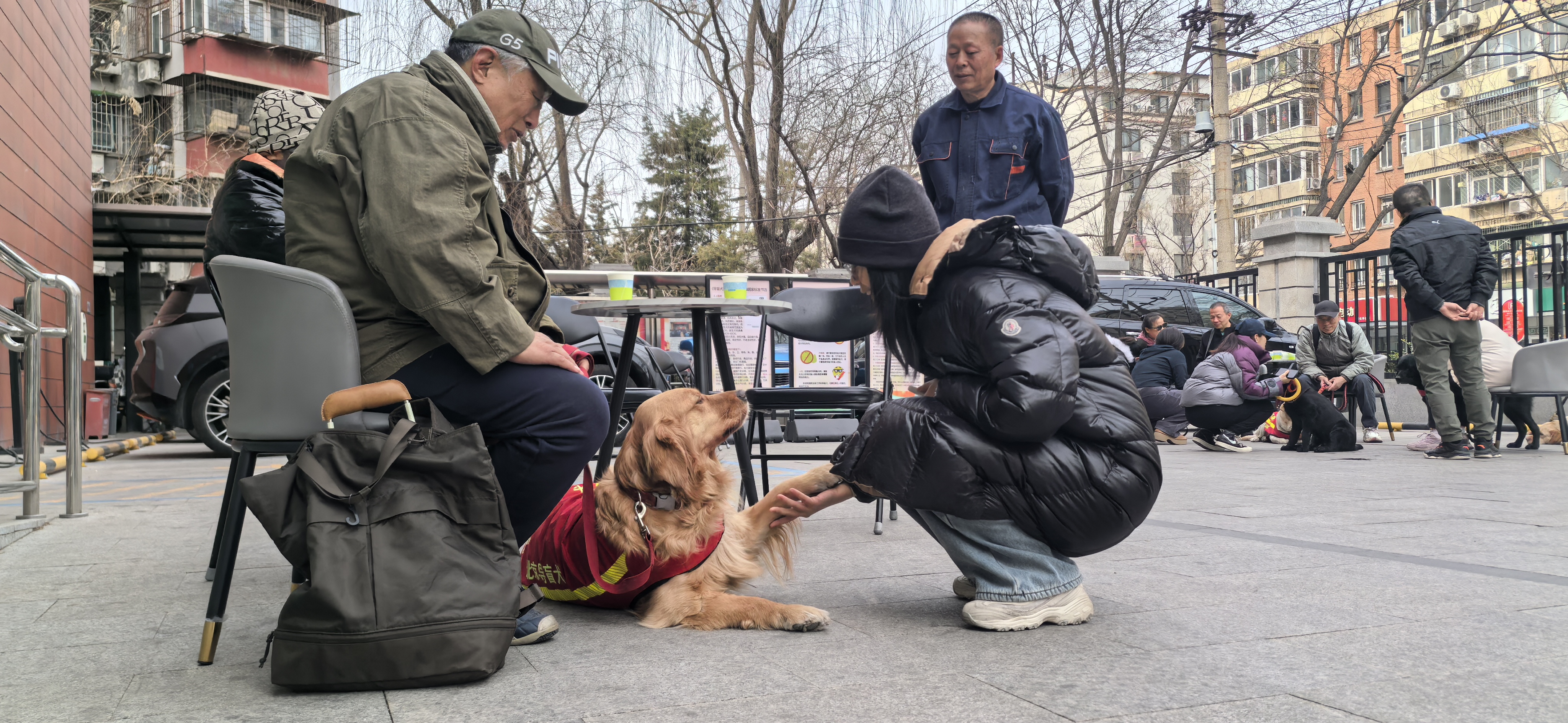 下午一时许,中心门口摆放了导盲犬主题展板,吸引了过往行人的目光,现场设置了装备展示区、知识讲解区和公众交流区。工作人员主动走上路边,热情邀请市民进来坐一坐、看一看。很快,原本安静的场地变得热闹起来--推着婴儿车的年轻父母蹲下来给孩子讲解,附近的居民三三两两结伴而来,爱狗人士更是围着使用者问个不停,还有不少得到消息的爱心人士专程赶来参与,三拉着行李箱的外地游客到酒店办好入住后,又折返回来参与活动。人群中,年龄最小的参与者只有十个月大,在婴儿车里指着导盲犬兴奋的发出咿咿呀呀的声音;年龄最长者已八十多岁,拄着拐杖认真聆听工作人员的讲解,临走时不断的说着“真好、真好。”