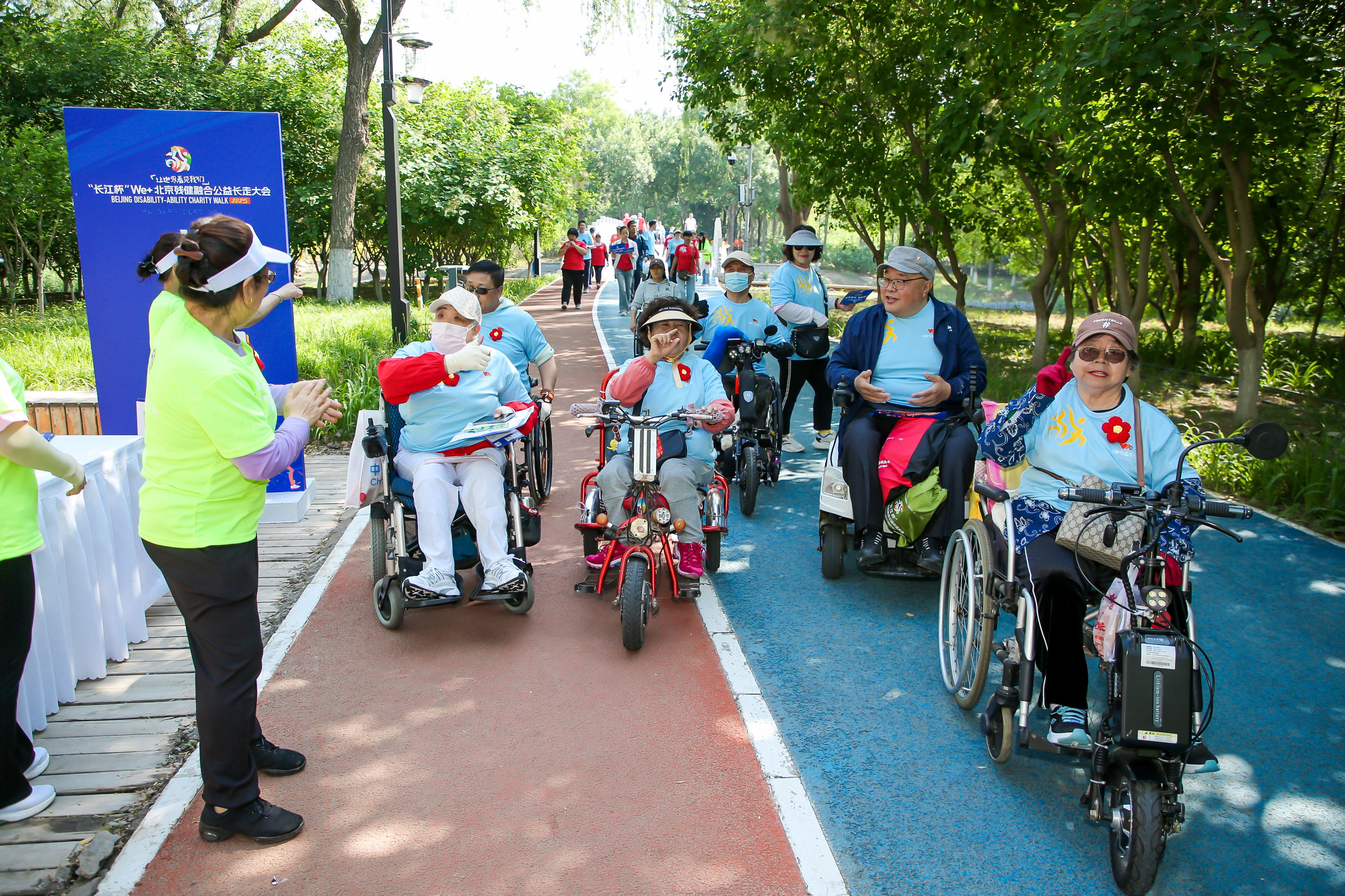 为积极响应国家全民健身的号召,进一步丰富残疾人文化体育生活,展示北京市无障碍环境建设成果,体现“勇气、毅力、激励、平等”为核心内涵的残奥价值观,5月24日,由北京市残疾人社会服务中心、北京市残疾人福利基金会、大兴区残疾人联合会及长江商学院北京校友会联合主办的“让世界看见我们”“长江杯”We+北京残健融合公益长走大会在大兴念坛公园成功举办。中国残疾人福利基金会理事长赵素京,北京奥运城市发展促进会常务副会长、市文联主席韩子荣,市残联党组书记、理事长陆晓光,市残疾人福利基金会理事长侯玉兰,市残联原理事长吴文彦,北京奥运城市发展基金会理事长李拥军,市政务和数据局二级巡视员韩兵,大兴区政协副主席刘会新,长江商学院北京校友会副会长武楗棠等出席活动。