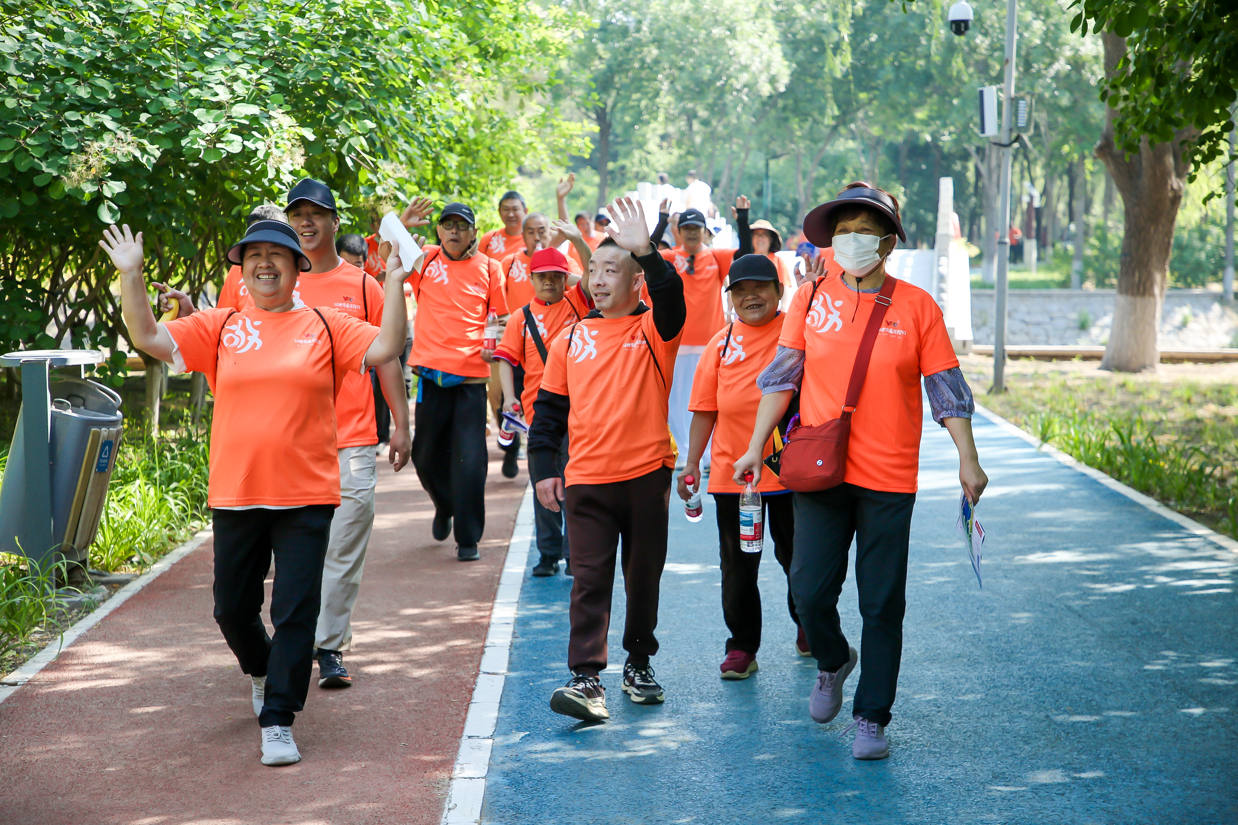 韩子荣宣布开赛,领导嘉宾共同鸣笛,长走活动正式开赛。长走环节设置“助力组”“残健融合组”“亲子组”“星愿组”四大特色组别,覆盖多样化群体。参与者通过小程序规划路线,打卡完成挑战。沿途设置知识问答、轮椅体验、科技助残展示等互动点位,展现残疾人“自尊、自信、自立、自强”的精神。