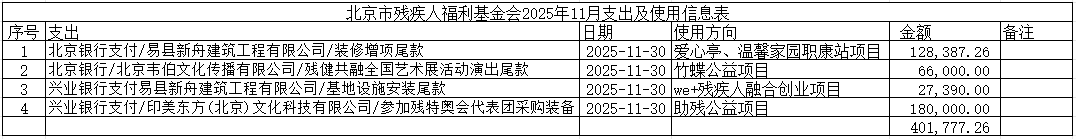 北京市残疾人福利基金会2025年11月支出及使用信息表